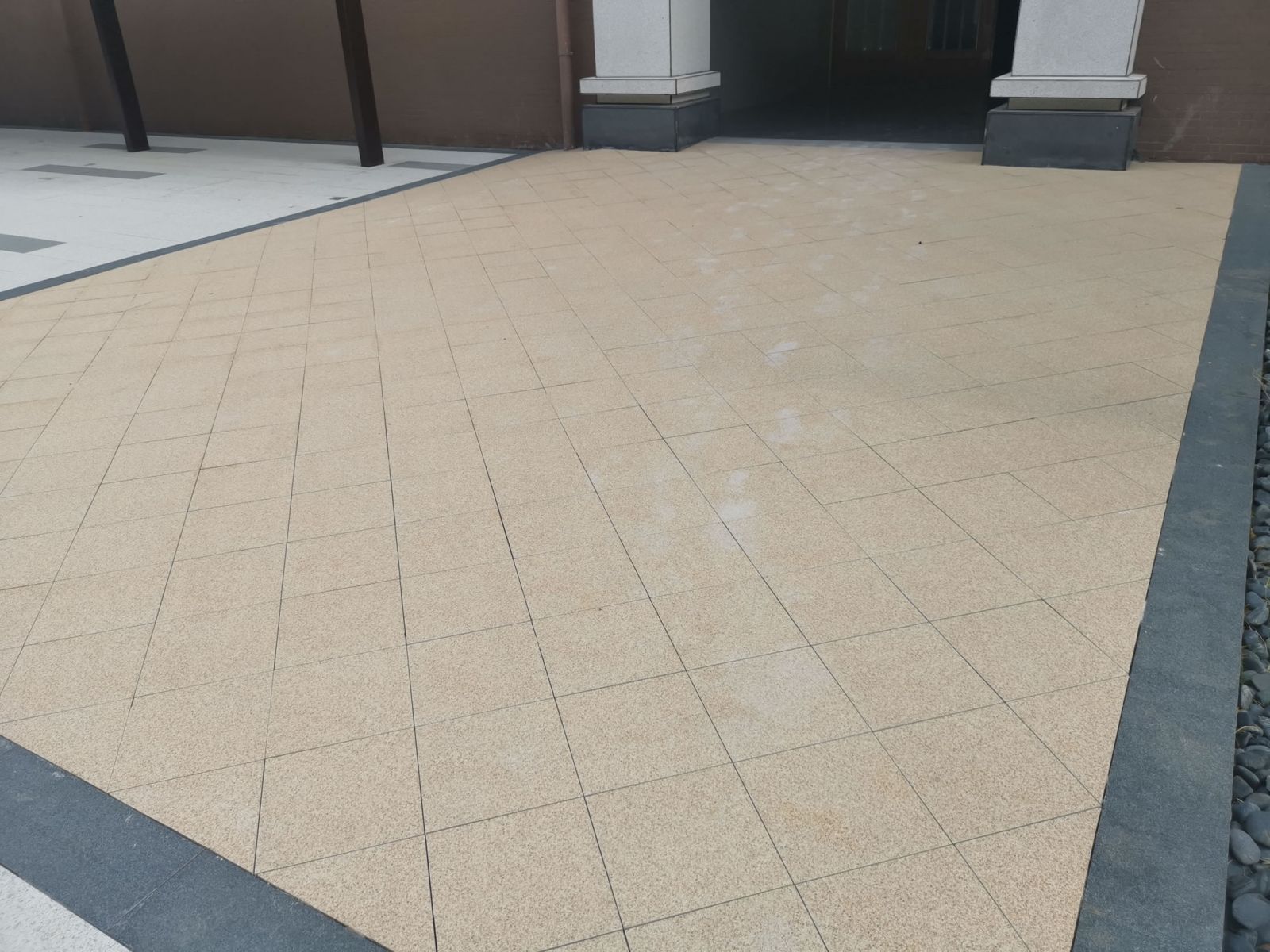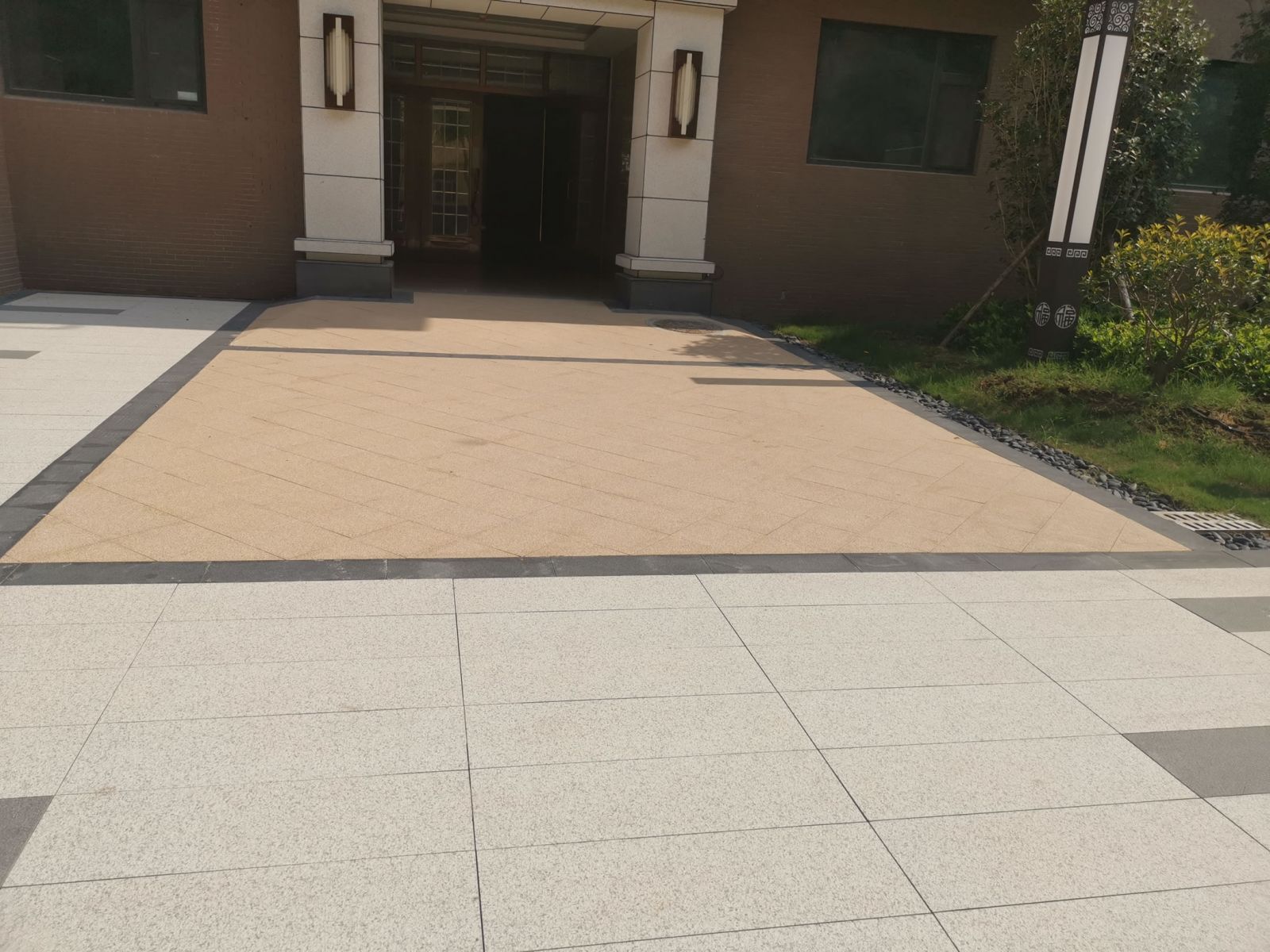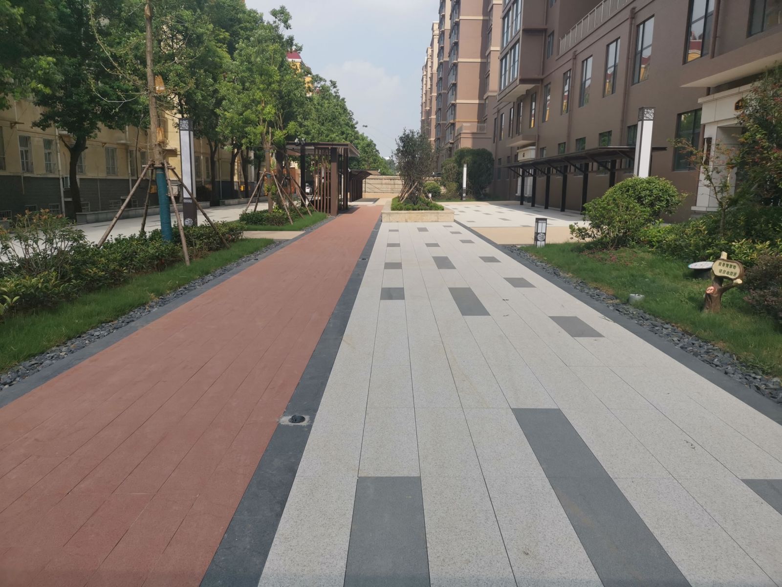 小區園林使用協進地鋪石瓷磚搭配鋪貼,堅固耐用易清潔。
