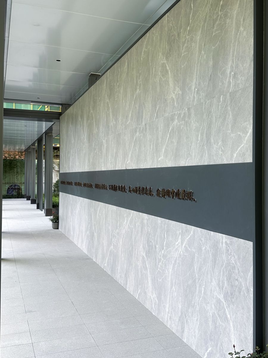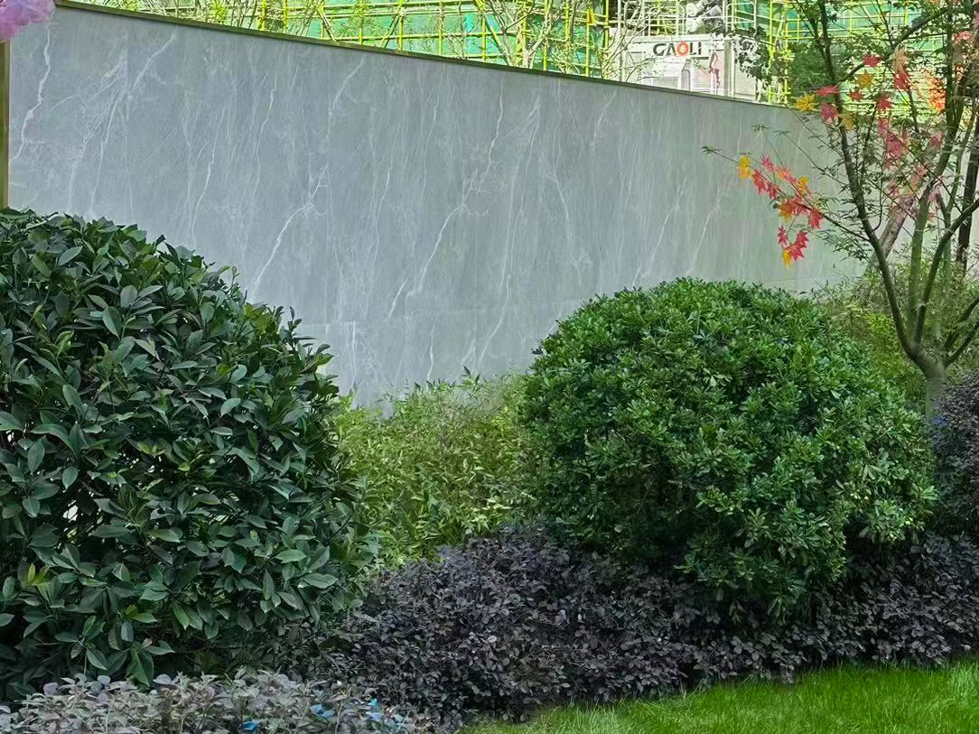 項目位于浙江麗水市,建筑面積18萬平方米。 小區景墻使用600*1200希臘淺灰干掛施工, 園林地鋪使用300*900芝麻灰鋪貼。 整體效果色澤均勻,整潔大氣。
