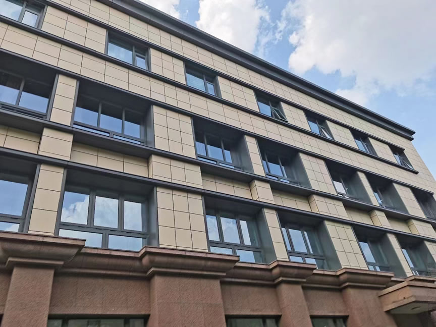項(xiàng)目位于上海新村路,建筑面積近10萬平方米,為三級(jí)甲等綜合性醫(yī)院。 醫(yī)院外立面使用協(xié)進(jìn)純色陶瓷薄板鋪貼。 產(chǎn)品色澤均勻細(xì)膩,效果整潔大氣。