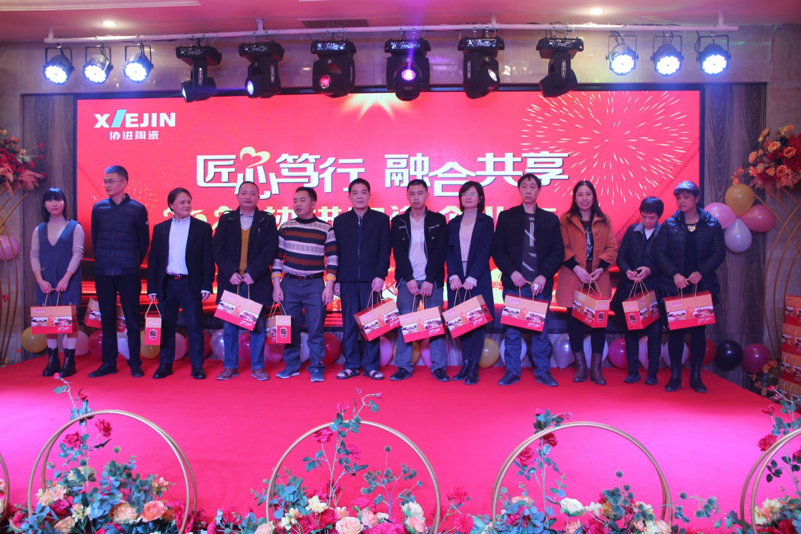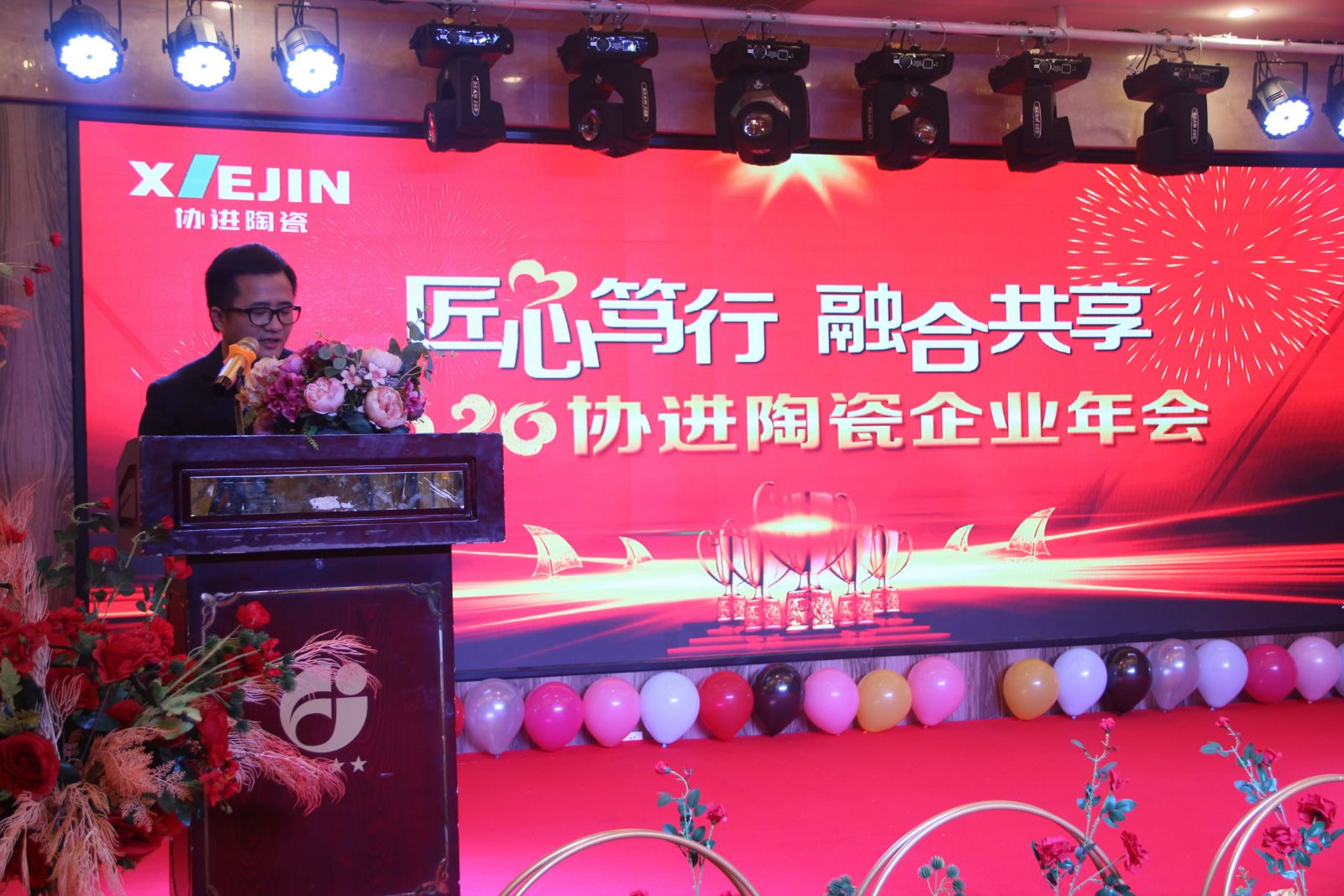 年會上,王少華總經理致2020年新年賀詞,回顧2019,展望2020。王總表示,協進公司經過過去一段時期建陶行業轉型升級的洗禮和產業結構調整的錘煉,有信心迎接行業進入綠色環保、智能制造、個性化定制和家居一體化高質量發展的新一輪挑戰。在新的一年里,公司期盼與全體協進人、合作伙伴、社會各界繼續攜手努力奔跑,只爭朝夕,追夢前行,不負韶華!