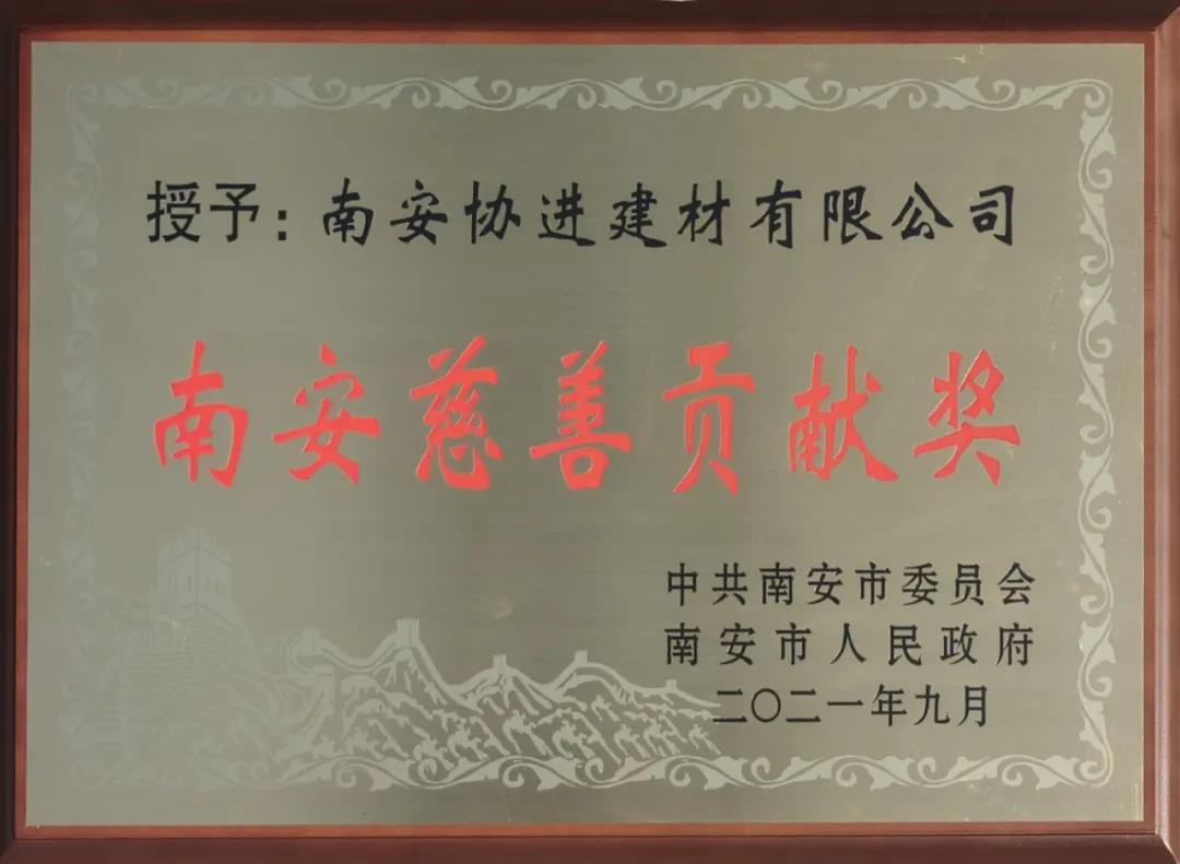 公司倡導(dǎo)“協(xié)進(jìn)一家親,生活更開心”的企業(yè)文化理念,在發(fā)展的同時不忘回報社會,通過南安市慈善總會、官橋鎮(zhèn)政府、官橋商會以及其他渠道積極、熱心參與教育、醫(yī)療(抗疫)、關(guān)愛老人、扶貧濟(jì)困、文化體育等各項(xiàng)社會公益事業(yè)。榮獲南安市委、市政府頒發(fā)“南安慈善貢獻(xiàn)獎”。