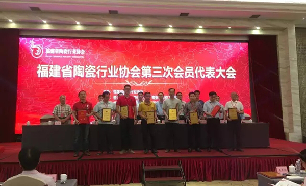 5月18日,福建省陶瓷行業協會第三次會員代表大會暨第三屆理事會第一次會議在晉江金瑪國賓酒店勝利召開。中國陶瓷工業協會副秘書長樊瑞新,省商務廳貿易與產業安全處主任科員陳勛勝,福建省企業與企業家聯合會主任謝建寧,泉州市經信委副主任王春陽,德化縣副處級干部徐文福,晉江磁灶鎮副鎮長陳國良,德化縣陶瓷辦主任徐永生,南平建陽二輕局主任劉建斌,福建省骨干企業代表二百余人參加此次會議。大會一致通過,由陳建新繼續出任福建省陶瓷行業協會會長,選舉產生了新一屆副會長、秘書長、監事長、副秘書長、常務理事、理事及監事會成員。葉少芬同志擔任第三屆理事會副會長兼秘書長,南安協進建材有限公司總經理王少華當選副會長。