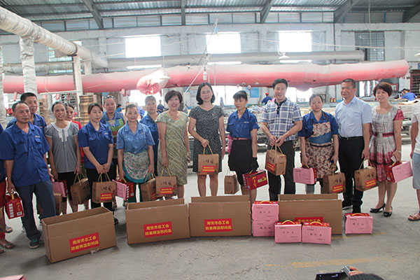 7月11日上午,南安市總工會、官橋鎮總工會領導蒞臨協進公司,對一線員工表達了親切的關心和慰問,并特意送來一批防暑降溫食品和飲料慰問全體員工,我們向各位領導表示感謝!并感謝黨和政府對我們的關心和對企業的支持!